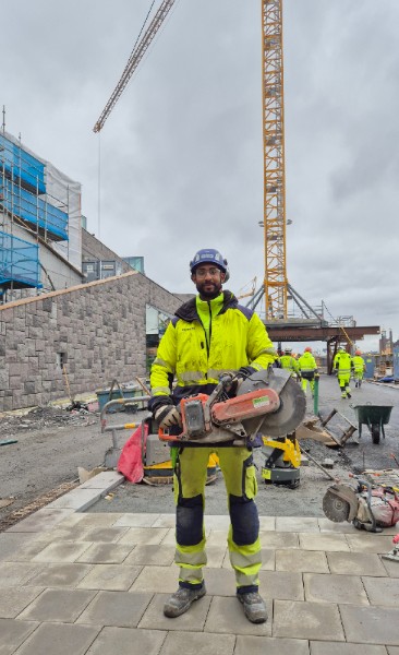 - Den mindre batteridrivna motorkapen är bra balanserad och gör sitt jobb. Den är enkel och smidig att använda och låter inte lika mycket, säger Daniel Berggren, väg – och anläggningsarbetare på Skanska.