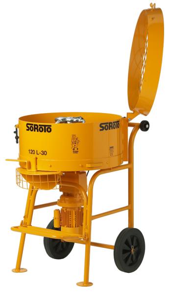 En stor maskin som ändå är lätt och praktisk, den blandar material till golvbeläggning, kakelsättning, murningsarbeten, fogstrykning av fasader, gjutning av golv, betongrenovering och mycket annat. Utrustad med hjul.