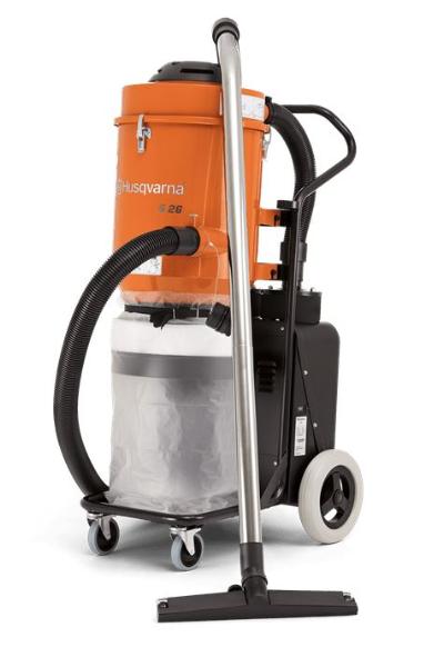 S 26 är en tystgående singel-fas HEPA dammuppsamlare som matchar Husqvarnas golvslipar PG 280, PG 450 och färskbetongsågen Soff-Cut 150. Denna professionella stoftavskiljare passar betong-, slip- och gipsdamm . Utrustad med två testade och certifierade HEPA H13 filter. Transporthjulen lämnar inga märken, är punkteringsfria och låses framtill. Bland funktionerna finns bland annat Jet Pulse filterrengöringssytem, timräknare och vakuummätare. Pa°ssystemet Longopac®
