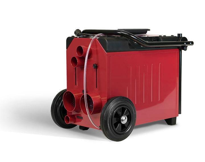 Sorptionsavfuktare med luftkyld kondensor, luftfilter, vattenpump och 5 m slang. Stos för ventilationsslang finns, diameter 100 mm. Ca 12 l/dygn vid 20°C och 60% RF. Rek. lufttemp. 1-25°C. Elanslutning: 1-fas 230V/10A.