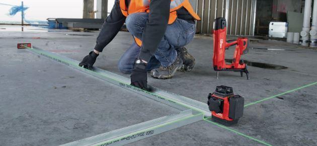 - Utsättning av innerväggsskenor på golv, väggar, innertak
