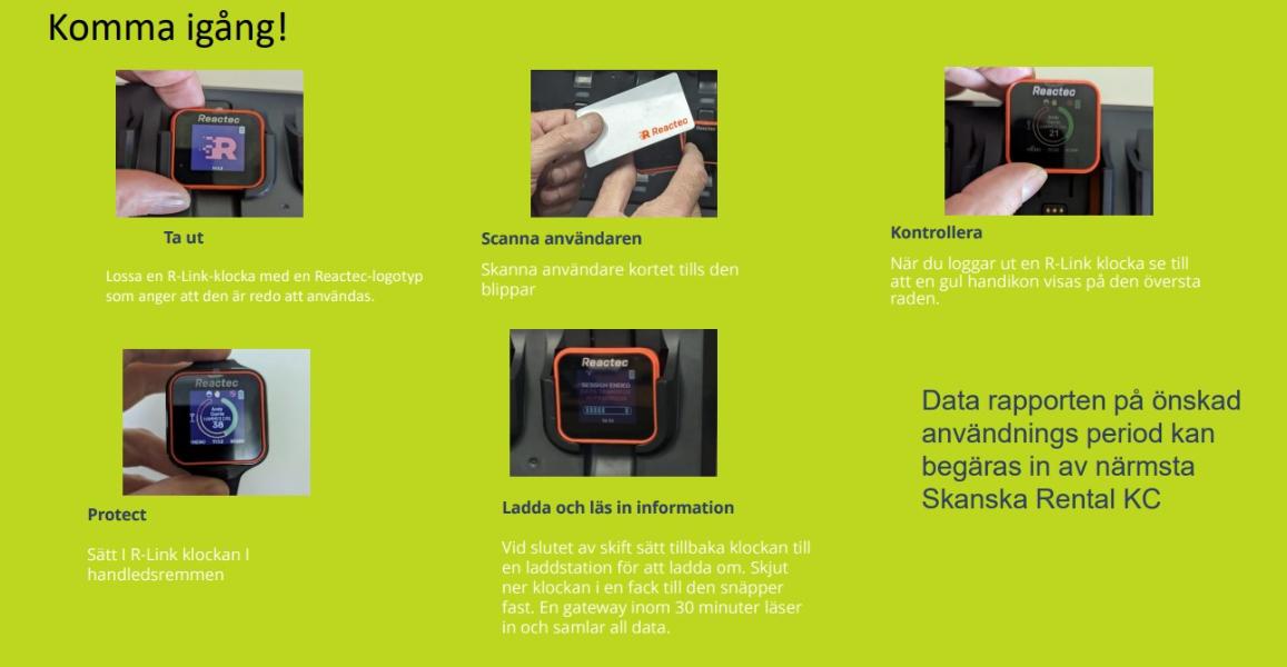 Det finns möjlighet att följa upp vibrationsexponering på individ- eller gruppnivå. Statistik kan skickas per automatik i rapportform, eller granskas direkt i Reactecs analysverktyg av användaren med behörighet. Skanska Rental hjälper er gärna att komma igång, och kan vara ett stöd i det fortsatta arbetet.