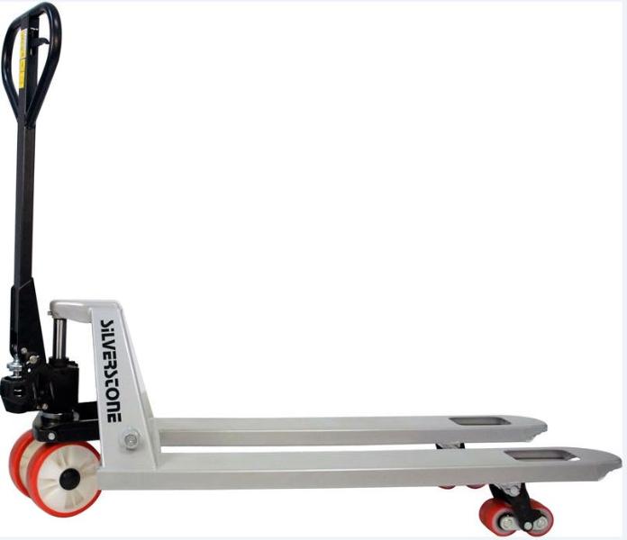 Handdragen och låglyftande. Maxlast ca 2000 kg. Gaffelbredd 520 mm. Vikt ca 60 kg.